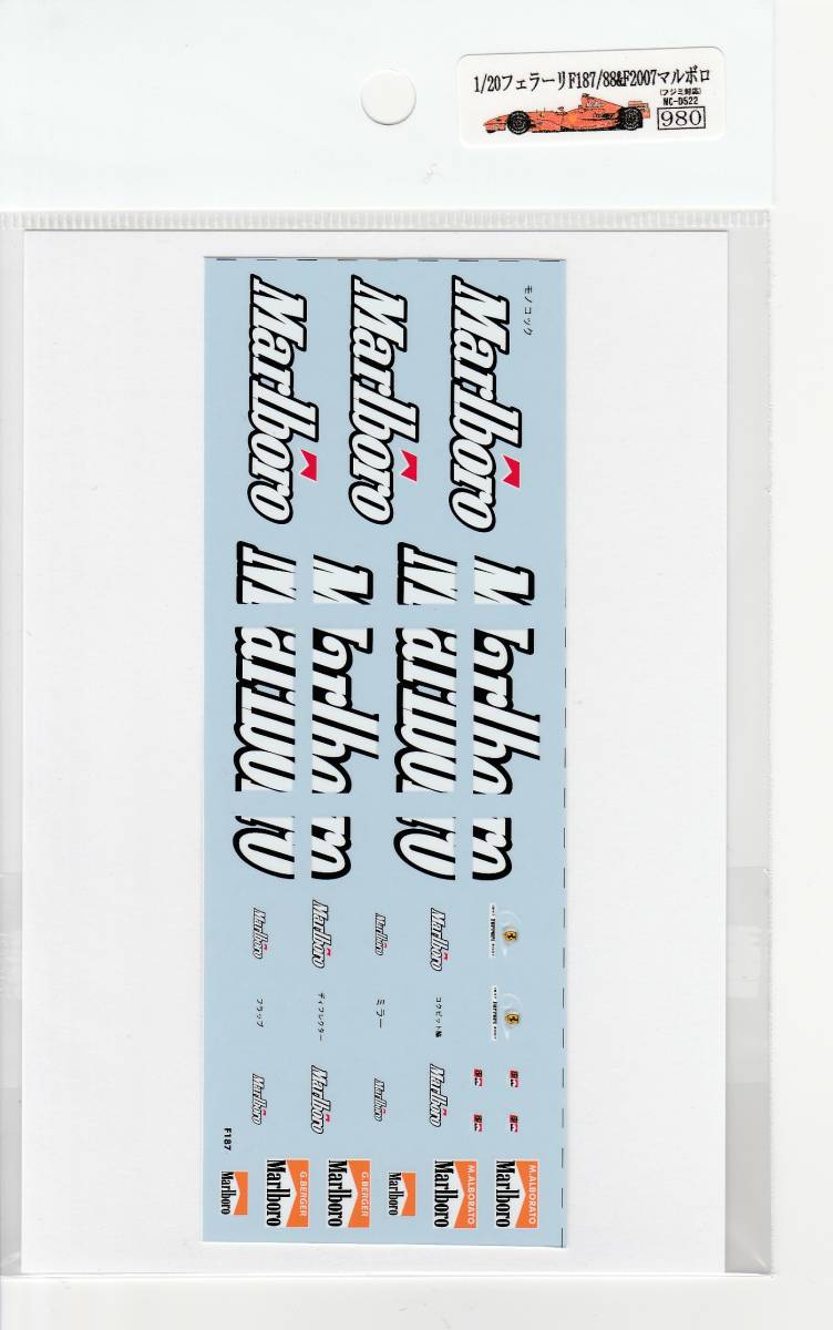 1/20 Ferrari F187 / 88 & F2007 Marlboro Decal
